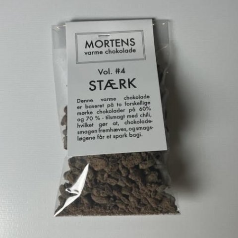 Baseret på to forskellige mørke chokolader på 60% og 70% - tilsmagt med chili, hvilket gør at, chokoladesmagen fremhæves, og smagsløgene får et spark bagi.