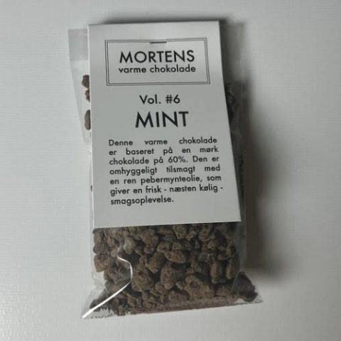 Baseret på en mørk chokolade på 60%. Den er omhyggeligt tilsmagt med en ren pebermynteolie, som giver en frisk - næsten kølig smagsoplevelse.